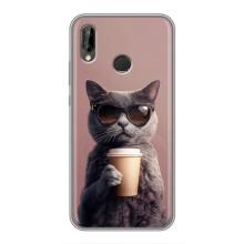 Чохол з принтом стильні тварини для Хуавей У9 (2019) - Кіт з кавою