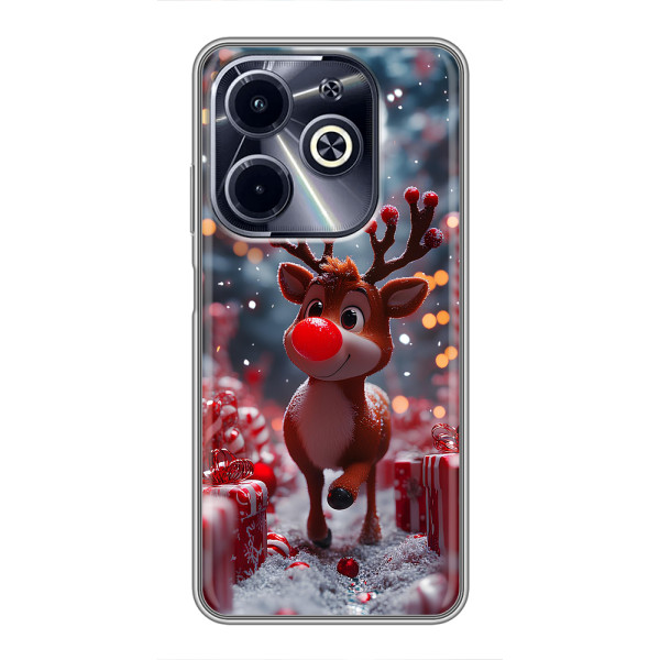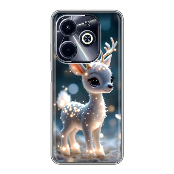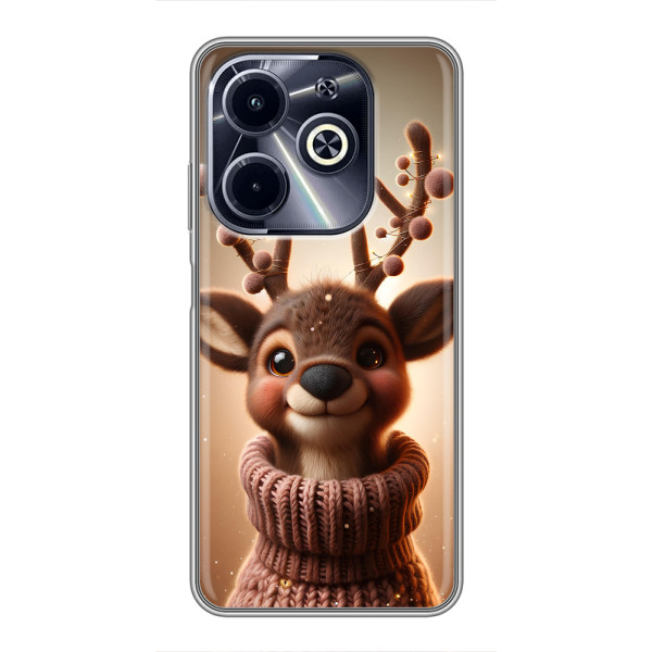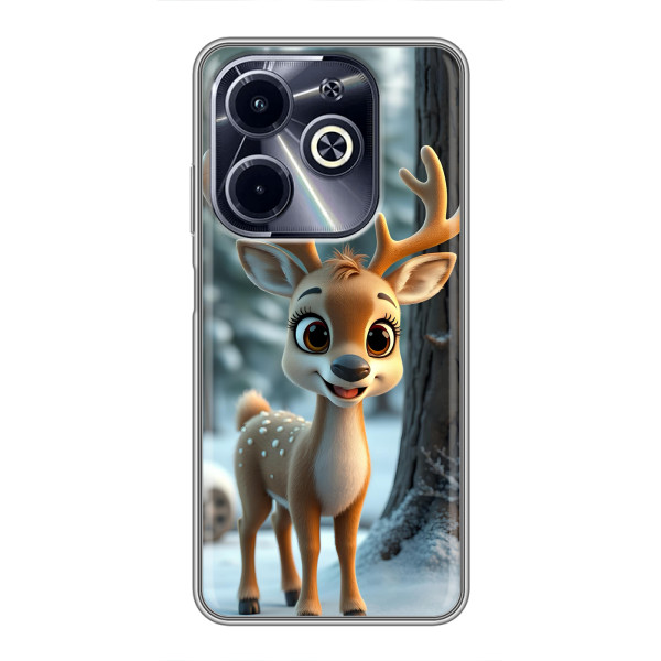 Зимова колекція принтів з теплим казковим настроєм: Блискуче оленятко, Олень в светрі, Олень з носом, Олень з шарфом, Олень серед подарунків, Оленятко в лісі, Оленятко серед герлянд, Оленятко — обирай свій улюблений дизайн для Infinix Hot 40i (#model_ук#) і додавай святкової магії щодня.
