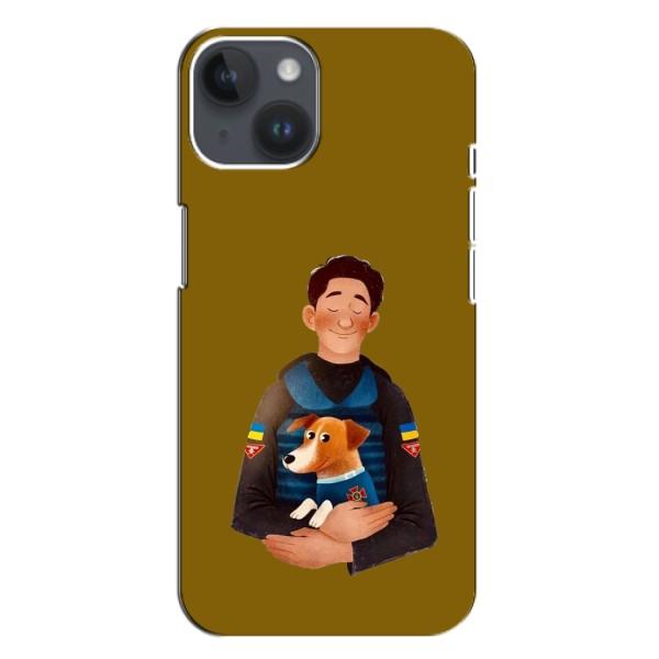 Ексклюзивний силіконовий чохол на iPhone 14 Plus з патріотичним принтом зображенням песика-сапера патрона