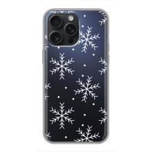 Зимні Чохли для Айфон 16 Про Макс - прозорий фон - Білі сніжинки