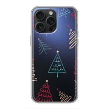 Зимні Чохли для Айфон 16 Про Макс - прозорий фон - Різдвяні ялинки