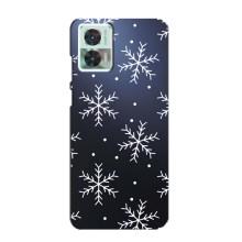Зимні Чохли для Моторола Едж 30 Нео - прозорий фон - Білі сніжинки