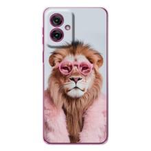 Чохол з принтом стильні тварини для Мото G55 - Лев в окулярах
