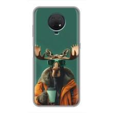Чохол з принтом стильні тварини для Нокіа G10 - Лось з кавою