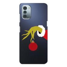 Зимні Чохли для Нокіа Дж11 - прозорий фон - Грінч з іграшкою