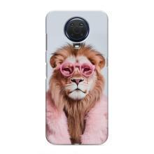 Чохол з принтом стильні тварини для Нокіа Джи20 - Лев в окулярах
