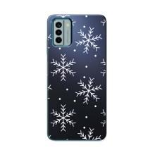 Зимні Чохли для Нокіа G22 - прозорий фон - Білі сніжинки