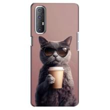 Чохол з принтом стильні тварини для OPPO Reno 3 Pro - Кіт з кавою