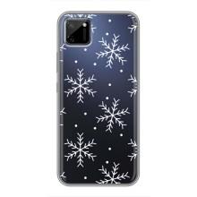 Зимні Чохли для РіалМі Ц11 - прозорий фон - Білі сніжинки