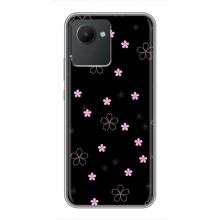 Чохол з розовим принтом для Realme C30 - Рожеві квіти на чорному