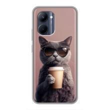 Чохол з принтом стильні тварини для РеалМi C33 - Кіт з кавою