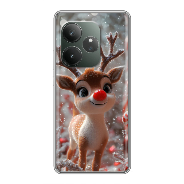 Зимова колекція принтів з теплим казковим настроєм: Блискуче оленятко, Олень в светрі, Олень з носом, Олень з шарфом, Олень серед подарунків, Оленятко в лісі, Оленятко серед герлянд, Оленятко — обирай свій улюблений дизайн для Realme GT 6 (#model_ук#) і додавай святкової магії щодня.
