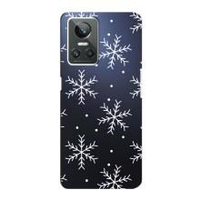 Зимні Чохли для РеалМі ГТ Нео 3 - прозорий фон - Білі сніжинки