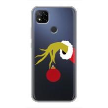 Зимні Чохли для Сяомі Редмі 9с - прозорий фон - Грінч з іграшкою