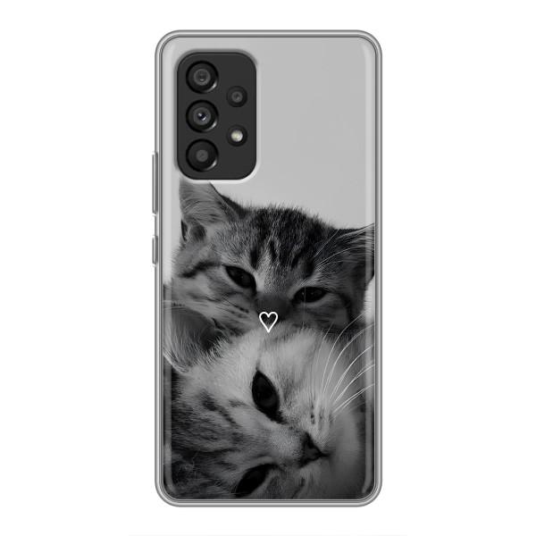 Оцей силіконовий чохол для Samsung Galaxy A53 (5G) з принтом коти – просто знахідка для тих, хто любить милоту з характером і хоче додати телефону унікальності. Чохол з котиками виглядає так, ніби ці пухнастики оживають – додають душі й роблять твій гаджет не просто штукою, а стильним аксесуаром.