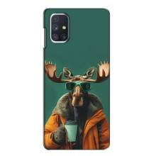 Чохол з принтом стильні тварини для Самсунґ Ґалаксі М51 - Лось з кавою