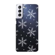 Зимні Чохли для Samsung Galaxy S21 - прозорий фон - Білі сніжинки