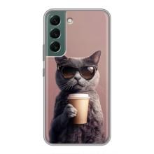 Чохол з принтом стильні тварини для Самсунг Гелексі S22 - Кіт з кавою