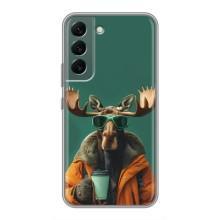 Чохол з принтом стильні тварини для Самсунг Гелексі S22 - Лось з кавою