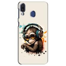 Чохол з Мавпами Samsung Galaxy M20 (M205) - (AlphaPrint) - Макака в навушниках