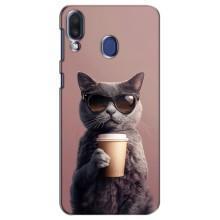 Чохол з принтом стильні тварини для Самсунг Ґелексі М20 - Кіт з кавою