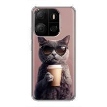 Чохол з принтом стильні тварини для ТЕСNO Рop 7 Рro - Кіт з кавою
