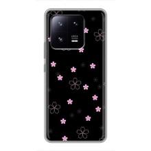 Чохол з розовим принтом для Xiaomi 13 Pro - Рожеві квіти на чорному