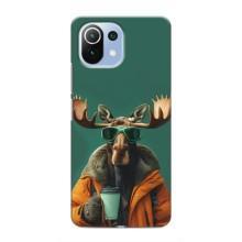 Чохол з принтом стильні тварини для Сяомі Мі 11 Лайт - Лось з кавою