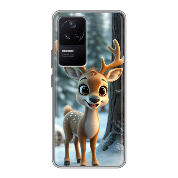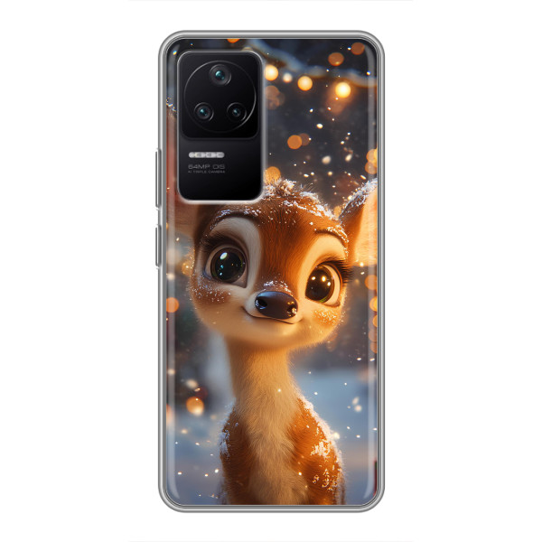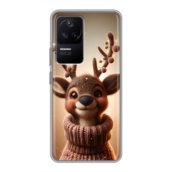 Зимова колекція принтів з теплим казковим настроєм: Блискуче оленятко, Олень в светрі, Олень з носом, Олень з шарфом, Олень серед подарунків, Оленятко в лісі, Оленятко серед герлянд, Оленятко — обирай свій улюблений дизайн для Xiaomi POCO F4 (5G) (#model_ук#) і додавай святкової магії щодня.