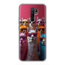 Чохол з принтом стильні тварини для Сяомі Редмі 9 - Лами в окулярах