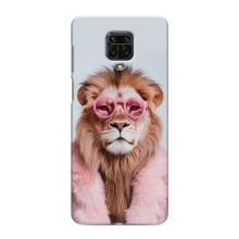Чохол з принтом стильні тварини для Шяомі Рідмі Ноут 9 Про - Лев в окулярах