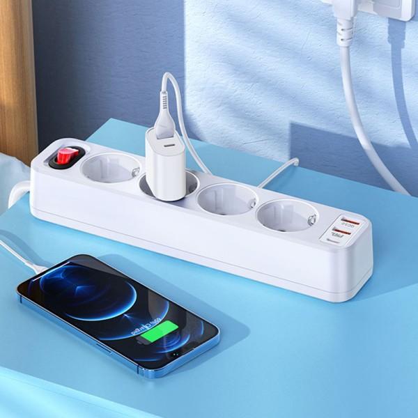 З цим подовжувачем можете під'єднати до 4 пристроїв до мережі одночасно, а також заряджати до 3 пристроїв через USB та Type-C порти.
