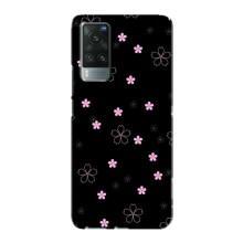 Чехол с розовым рисунком для Vivo X60 - Розовые цветы на черном