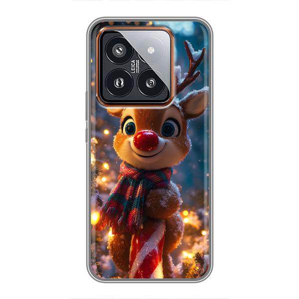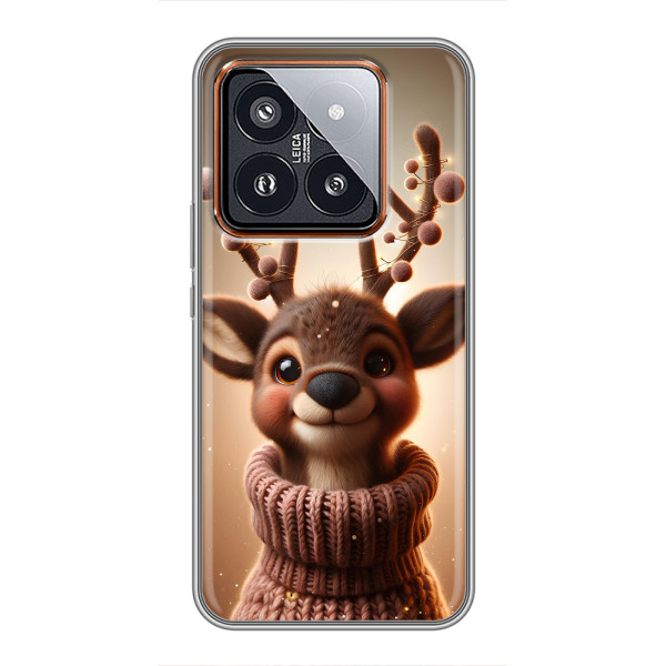 Зимняя коллекция принтов с тёплым сказочным настроением: Блестящий оленёнок, Олень в свитере, Олень с носом, Олень с шарфом, Олень среди подарков, Оленёнок в лесу, Оленёнок среди гирлянд, Оленёнок — выбери свой любимый дизайн для Xiaomi 14 Pro (Сяоми 14 Про) и добавь праздничной магии каждый день.