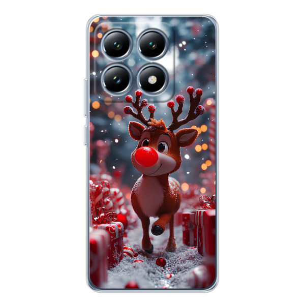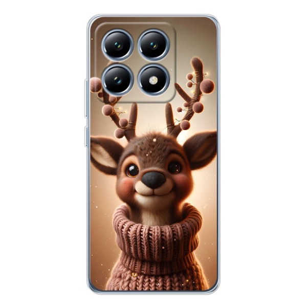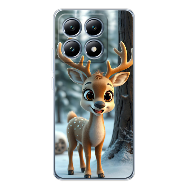 Зимняя коллекция принтов с тёплым сказочным настроением: Блестящий оленёнок, Олень в свитере, Олень с носом, Олень с шарфом, Олень среди подарков, Оленёнок в лесу, Оленёнок среди гирлянд, Оленёнок — выбери свой любимый дизайн для Xiaomi 14T (Сяомі 14Т) и добавь праздничной магии каждый день.