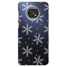 Зимние Чехлы для Ксяоми Ми 10Т Лайт - прозрачный фон - Белые снежинки