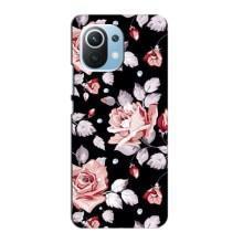 Чехлы с Цветами для Xiaomi Mi 11 Lite (VPrint) - Цветочки на черном