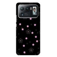 Чехол с розовым рисунком для Xiaomi Mi 11 Ultra - Розовые цветы на черном
