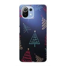 Зимние Чехлы для Сяоми Ми 11i - прозрачный фон - Рождественские елки