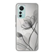 Чехол с цветочным принтом на Сяоми 12 Лайт - Черные цветы