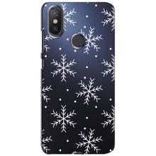 Зимние Чехлы для Ксиаоми Ми А2 Лайт - прозрачный фон - Белые снежинки