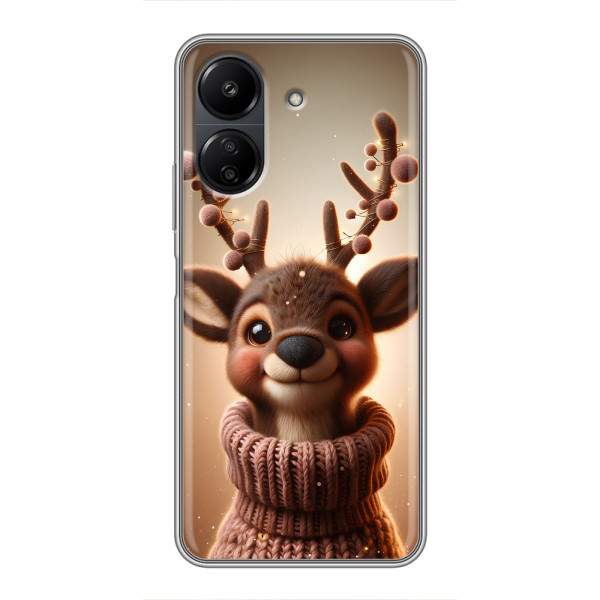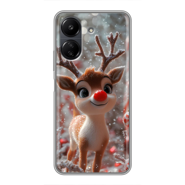 Зимняя коллекция принтов с тёплым сказочным настроением: Блестящий оленёнок, Олень в свитере, Олень с носом, Олень с шарфом, Олень среди подарков, Оленёнок в лесу, Оленёнок среди гирлянд, Оленёнок — выбери свой любимый дизайн для Xiaomi POCO C65 (ПОКО С65) и добавь праздничной магии каждый день.