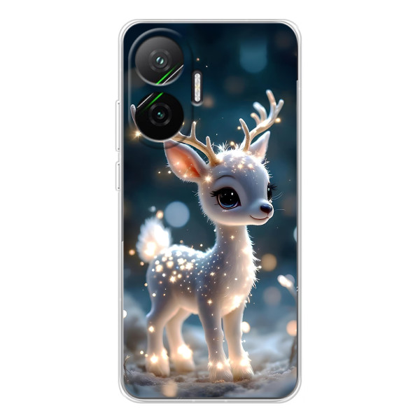 Зимняя коллекция принтов с тёплым сказочным настроением: Блестящий оленёнок, Олень в свитере, Олень с носом, Олень с шарфом, Олень среди подарков, Оленёнок в лесу, Оленёнок среди гирлянд, Оленёнок — выбери свой любимый дизайн для Xiaomi POCO F7 (Поко Ф7) и добавь праздничной магии каждый день.