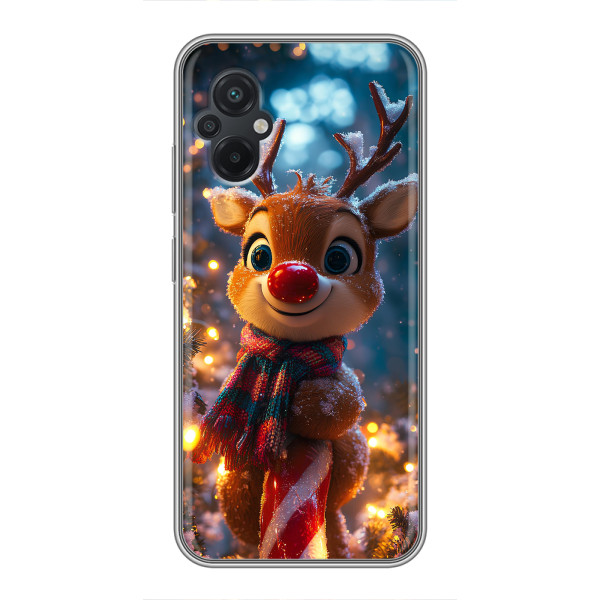 Зимняя коллекция принтов с тёплым сказочным настроением: Блестящий оленёнок, Олень в свитере, Олень с носом, Олень с шарфом, Олень среди подарков, Оленёнок в лесу, Оленёнок среди гирлянд, Оленёнок — выбери свой любимый дизайн для Xiaomi POCO M5 (Поко М5) и добавь праздничной магии каждый день.