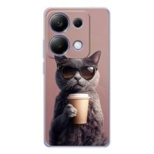 Чехол с принтом стильные животные для Поко М7 Про 5G - Кот с кофе