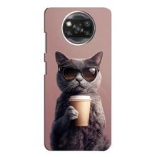 Чехол с принтом стильные животные для Поко X3 Про - Кот с кофе