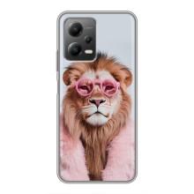 Чехол с принтом стильные животные для Поко Х5 (5Джи) - Лев в очках