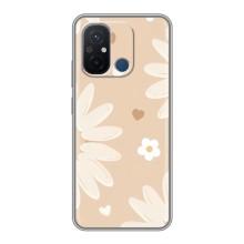 Чехол с цветочным принтом на Редми 12с - Бежевые цветы