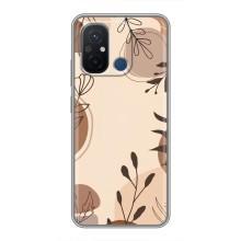 Чехол с цветочным принтом на Редми 12с - Коричневые цветы