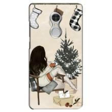 Рождественские, Праздничные Чехлы для Редми 5 - Девушка с елкой